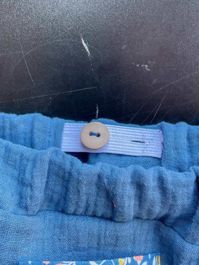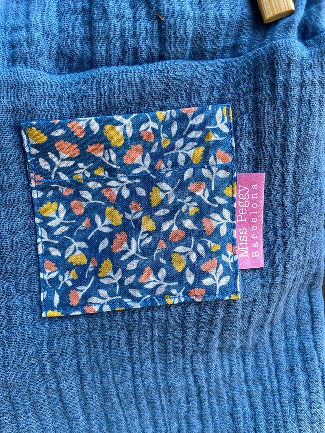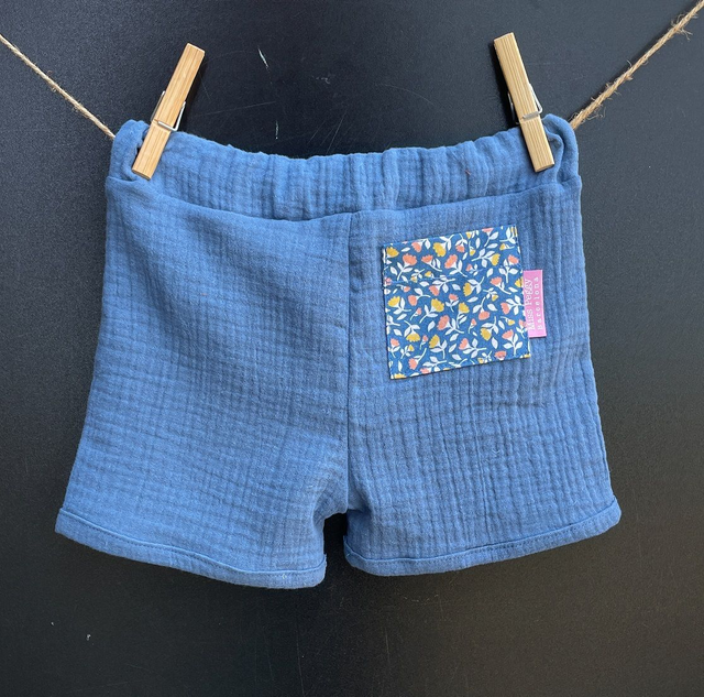 Short de verano confeccionado con muselina con certificado OEKO-TEX en color denim. Suave, fresco y respetuoso con la piel de los más peques. Cinturilla con goma con ojales en su interior, ajustable mediante un botón. En la parte posterior lleva un divertido bolsillito.
